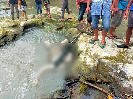 Jasad Muhammad Padila Akbar saat ditemukan dialiran sungai bah bolon Nagori Maligas Bayu