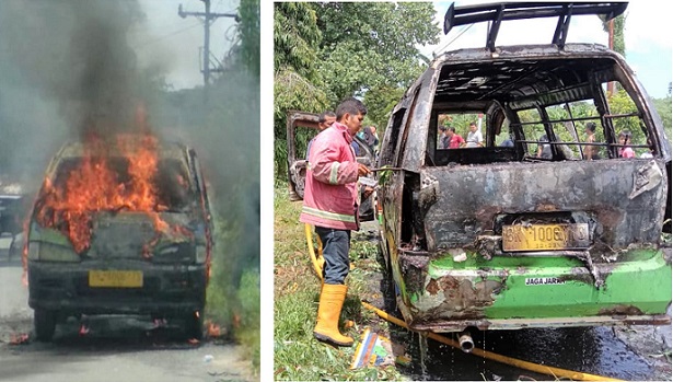 Setelah sehari sebelumya satu unit truk cold diesel muatan pisang, tepat hari Minggu (29/5/2022) siang sekira pukul 11.00 Wib satu unit angkot Koperasi Beringin BK 1006 TS terbakar di Kota Siantar tepatnya jalan Bukit Maratur, Kelurahan Pondok Sayur, Kecamatan Siantar Barat.