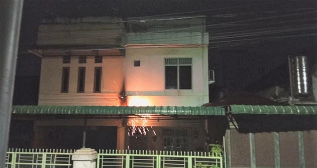 Spontan wartawan ini menggedor pintu pagar pemilik rumah untuk memberitahukan kejadian. Api semakin membesar hingga mengeluarkan percikan api. Bahkan, suara ledakan kecil terdengar jelas.