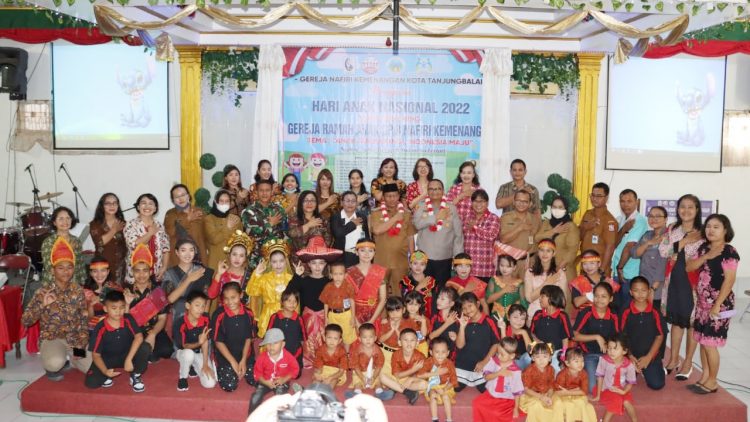 Kapolres TanjungbaIai AKBP Ahmad Yusuf Afandi SIK, MM bersama PLT Walikota Tanjungbalai H. Waris Tholib, S.Ag, MM, menghadiri perayaan Hari Anak Nasional 2022 dan sekali gus launching Gereja ramah anak GPDI Nafiri Kemenangan di GPdI Nafiri Kemenangan Jalan Cermai Km 5.5, Kelurahan Sijambi Kecamatan Datuk Bandar Kota Tanjungbalai, Senin (25/7/2022) siang sekitar Pukul 12.05 Wib di