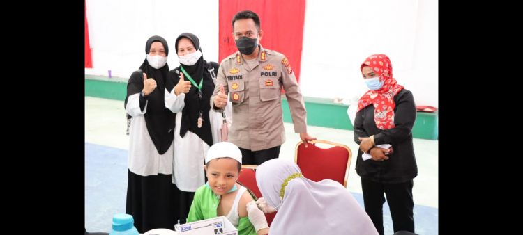 Kapolres Tanjung Balai AKBP Triyadi, SH, SIK pantau langsung pelaksanaan Gebyar Vaksinasi Presisi Anak 6-11 Tahun dan Lansia Dosis 1, 2 dan 3 (Booster), Rabu (23/3/2022) pagi pukul 10.00 Wib di GOR Wira Satya Polres Tanjung Balai.