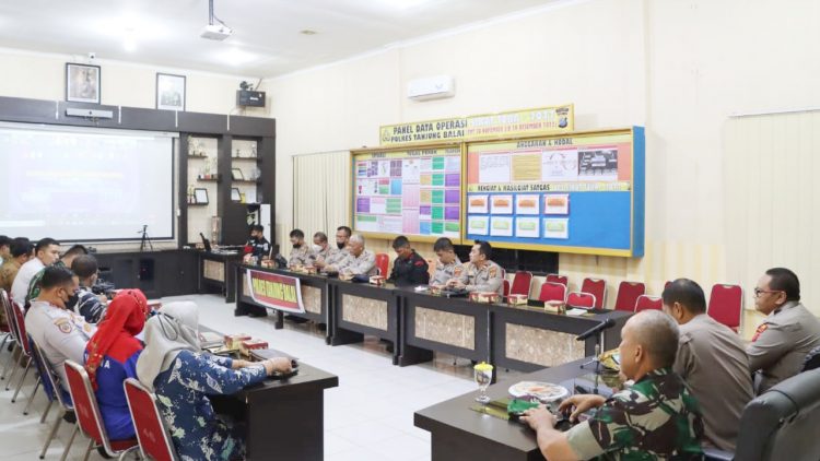 Kapolres Tanjungbalai AKBP. Ahmad Yuf Afandi SIK, MM bersama Fokopimda zoom meeting mengikuti Rakor Lintas Sektoral Bidopsnal dalam rangka Kesiapan Pengamanan Natal 2022 dan Tahun Baru 2023 bertempat di Aula Pesat Gatra Mako Polres Tanjungbalai, Jumat (16/12/2022) sekitar pukul 8.50 Wib.