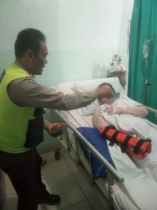Personil Unit Gakkum Sat Lantas melihat kondisi Warni Ervina Siahaan opname di RS Vita Insani