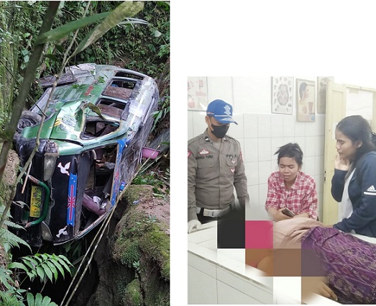 Namun sangat disayangkan laju mopen Fa Sinar Murni tersebut terbalik dan terjun kejurang yang kedalaman kira-kira 40 meter. Menerima laporan dari masyarakat, Personil piket Unit Gakkum Sat Lantas Polres Simalungun dan Poslantas Balata langsung turun melakukan olah TKP.