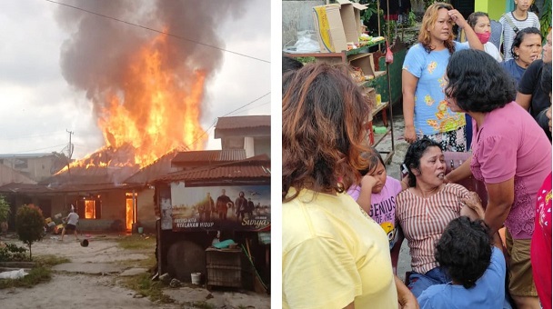 Korban pun keluar dari rumah sembari berteriak kebakaran. Para tetangga pun membantu menyirami kobaran api menggunakan peralatan sederhana. Akan teatpi kondisi angin kencang membuat api semakin berkobar dan merembes membakar dua rumah papan miliknya yang terletak bersebelahan.
