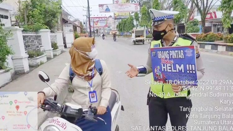 Personil Satuan Lalu Lintas (Sat Lantas) Polres Tanjungbalai melaksanakan Public speaking atau himbauan untuk menggunakan helm SNI guna terciptanya Kamseltibcarlantas di wilayah hukum Polres Tanjung Balai, Selasa (18/10/2022) sekitar pukul 08.00 Wib pagi.