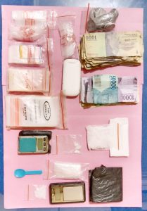 Lalu ditemukan juga 1 bungkus plastik besar klip transparan diduga berisi narkotika jenis shabu bruto 23,84 gram didalam lemari, 1 bungkus plastik klip transparan diduga berisi narkotika jenis shabu bruto 1,19 gram, 1 buah timbangan elektrik warna silver, 5 bal plastik klip transparan kosong, 1 buah handphone merk Samsung warna putih, uang kertas Rp.418.000 dan uang logam Rp.16.000 yang keseluruhannya terletak di lantai rumahnya.