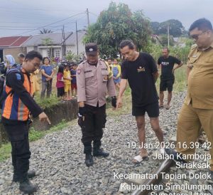 Kejadian itu di jalur perlintasan Km 38+8/9, Lingkungan V Sinaksak, Kelurahan Sinaksak, Kecamatan Tapian Dolok, pada Senin (19/1/2026) sore.