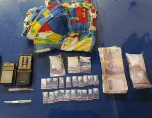 1bungkus plastik klip kecil transparan berisi diduga Narkotika jenis shabu bruto 0,85 gram, 1 bungkus plastik klip sedang transparan berisi diduga Narkotika jenis shabu bruto 4,29 gram, Uang tunai sebanyak Rp 300.000, 1 buah plastik warna hitam sebagai pembalut shabu, 1 helai sarung bantal, 1 bal plastik klip tranparan kosong, 1 unit timbangan elektrik kecil warna hitam dan 1 unit HP Nokia warna hitam.